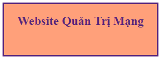 <!DOCTYPE html><html><head><style>div {width: 300px;height: 100px;background-color: LightSalmon;color: #58257b;border: 3px solid #58257b;-ms-transform: translate(100px,50px); /* IE 9 */-webkit-transform: translate(100px,50px); /* Safari */transform: translate(100px,50px); /* Standard syntax */}</style></head><body><div><h2 style="text-align: center">Website Quản Trị Mạng</h2></div></body></html>