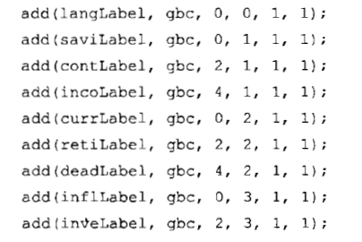 GridBagLayout gbl = new GridBagLayout(); getContentPane().setLayout(gbl);