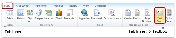 - Chọn Tab Insert àgroup Text à Textbox àDraw textbox