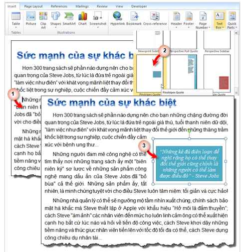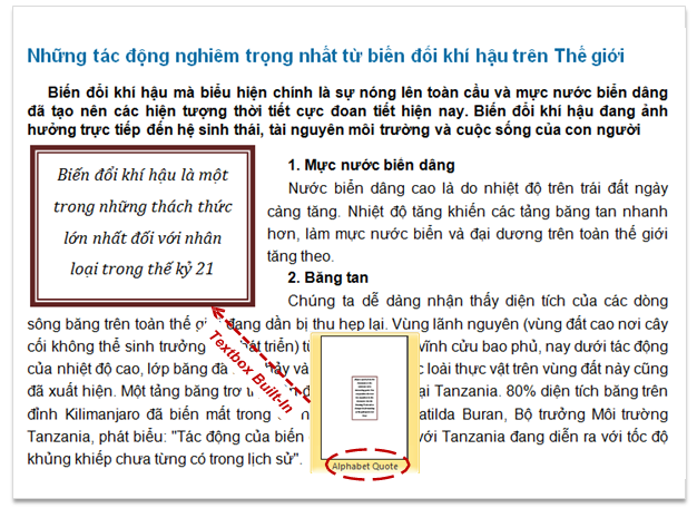 Ví dụ: kiểu Built-in textbox dạng Quote (Alphabet Quote)