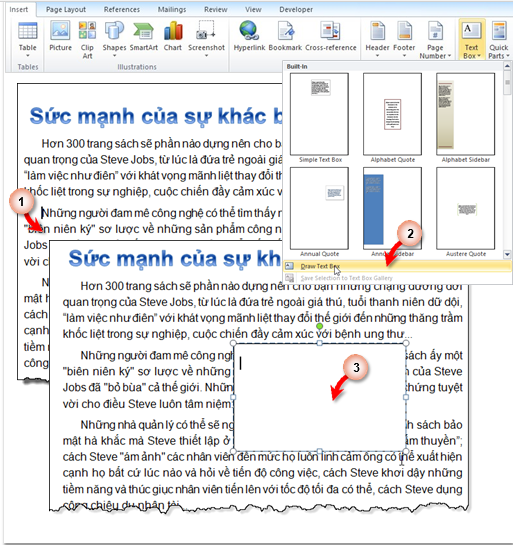 1. Insert Built-In Textbox – Chèn một Built-In Textbox