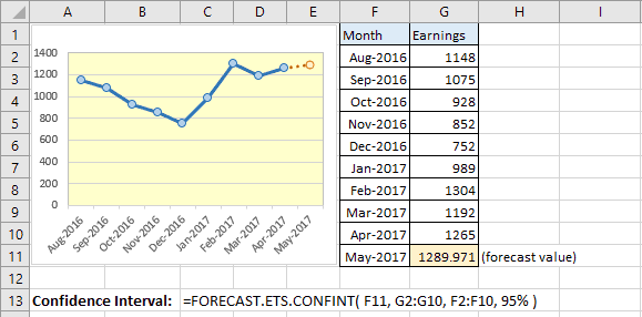 Hàm Forecast ETS Confint trong Excel 2016