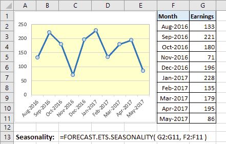 Hàm forecast ets seasonality trong Excel 2016