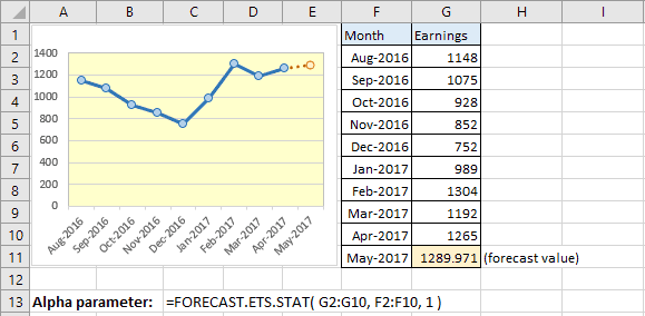 Hàm forecast ets stat trong Excel 2016