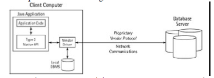 Loại 2: có tên gọi là Native API Driver. Trình điều khiển loại này sẽ chuyển các lời gọi của JDBC API sang thư viện hàm (API) tương ứng với từng hệ CSDL cụ thể. Trình điều khiện loại này thường chỉ do nhà xây dựng hệ CSDL cung cấp. Để có thề thi hành chương trình mã lệnh để làm việc với hệ CSDL cụ thể cần phải được cung cấp đi kèm với chương trình,