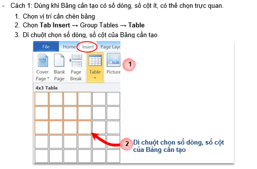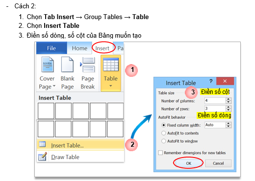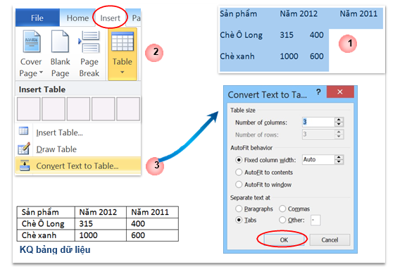 1. Insert Table/ Convert Text to Table – Tạo Bảng