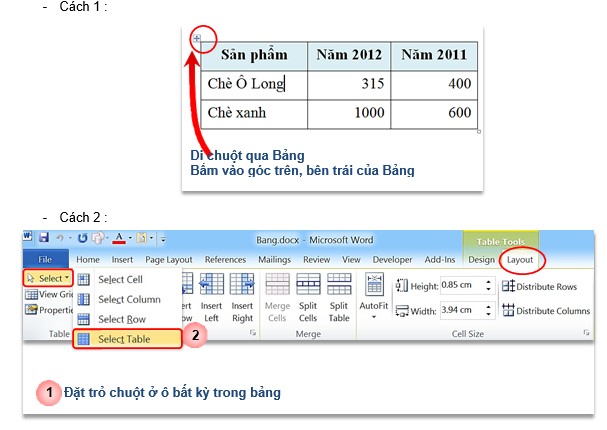 3. Select – Cách chọn/ bôi đen Dòng/ Cột/ Bảng