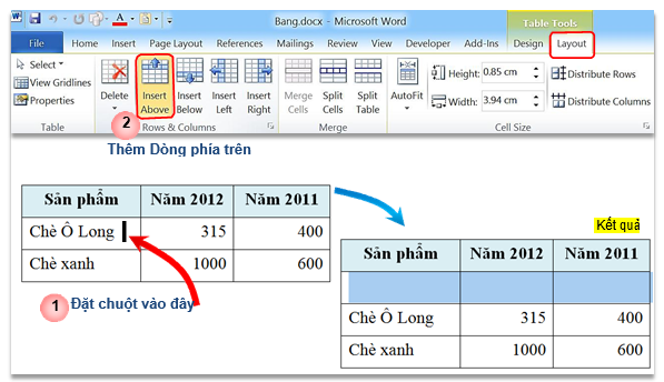 2. Table Tools – Hiển thị Thanh công cụ chỉnh sửa Bảng