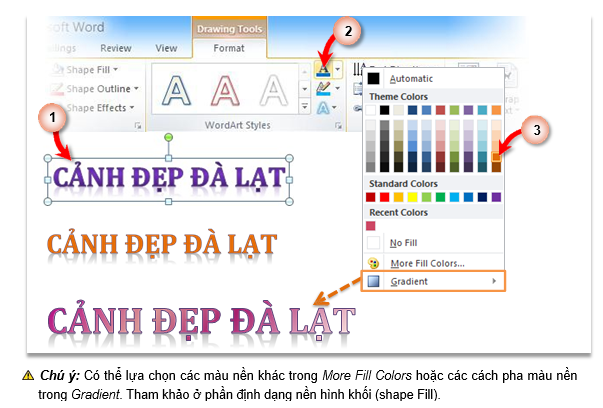 - Chọn Drawing Tools à Group WordArt Styles à Text Fill ( )