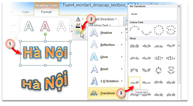 Ví dụ: Áp dụng Text Effect kiểu Transform à Curve Up cho chữ nghệ thuật