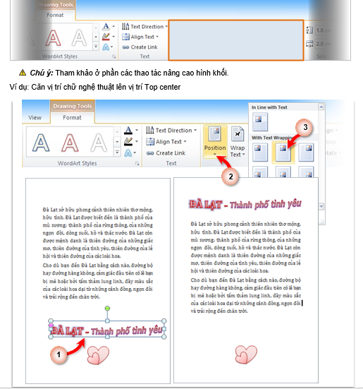 1. Căn chỉnh vị trí của chữ nghệ thuật trong trang / đoạn văn bản