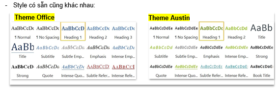 – Khi bạn thay đổi Theme thì tất cả những thiết kế có sẵn của Word cũng thay đổi theo Theme đó.