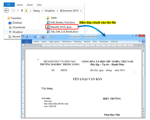 3.3. Tạo văn bản mới từ Template do bạn tạo