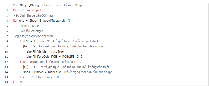 Nếu đúng (thỏa mãn điều kiện) thì sẽ đổi màu cho Shape đó