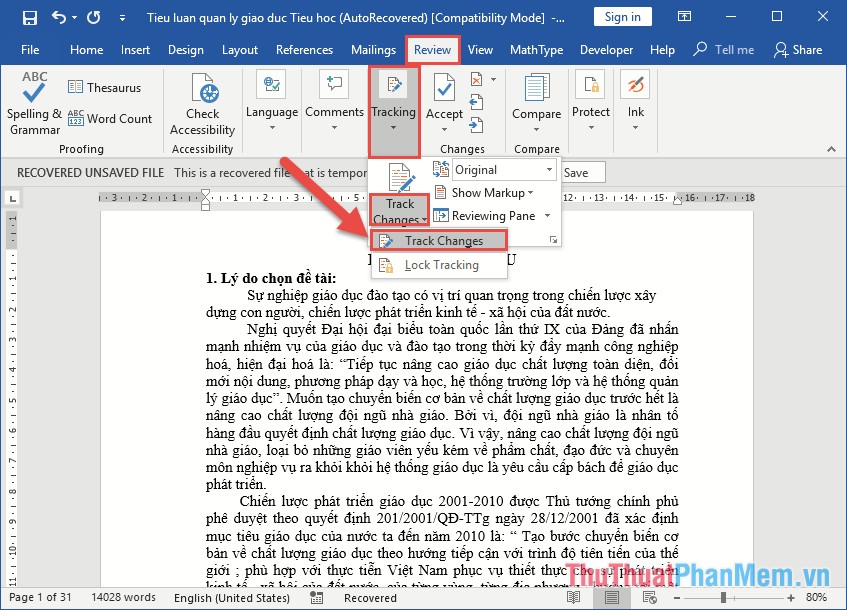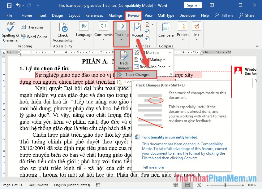 Track Changes là ứng dụng trong Word được sử dụng để sửa đổi văn bản nhưng vẫn giữ được văn bản gốc. Khi sử dụng Track Changes, mọi thay đổi của văn bản sẽ được lưu lại và hiển thị trên Word.