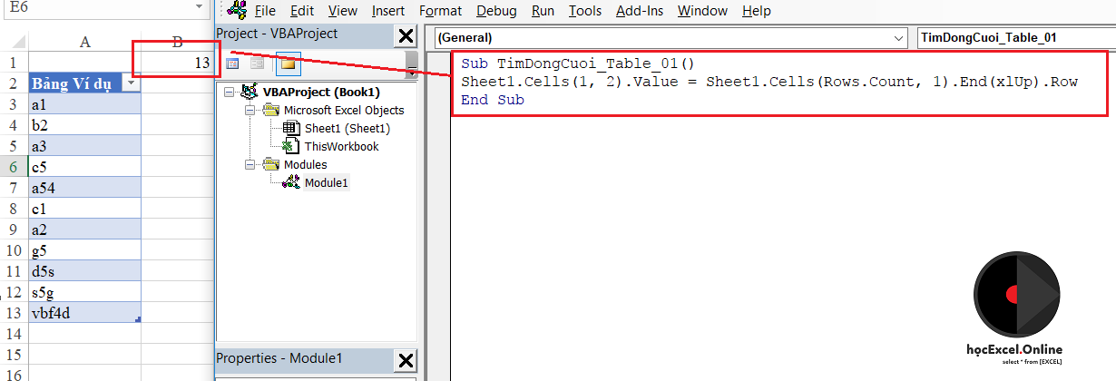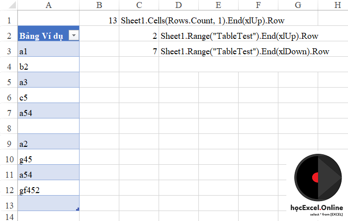 2. Phương pháp End(xlUp) / End(xlDown) dùng riêng với Table