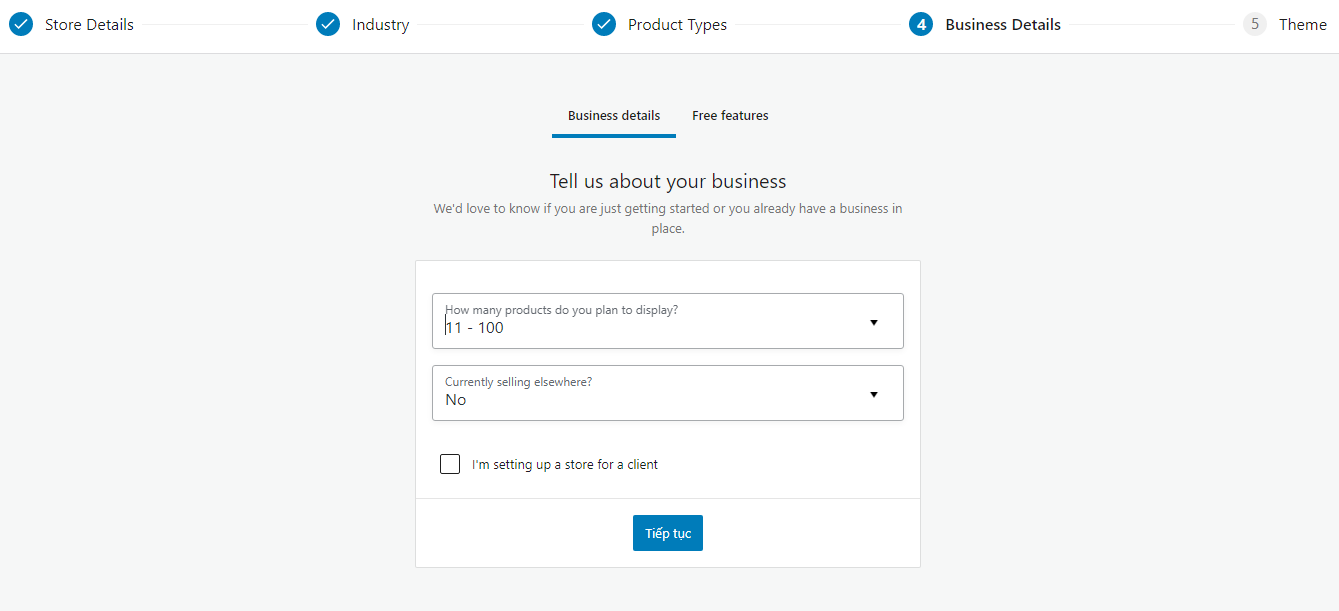 Bước 4: Business Details: Bạn dự định bán bao nhiêu sản phẩm và có bán ở nơi nào khác?