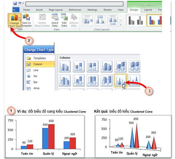 a. Change Chart Type – Đổi kiểu biểu đồ