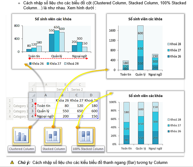 a. Column – Biểu đồ cột và cách nhập số liệu