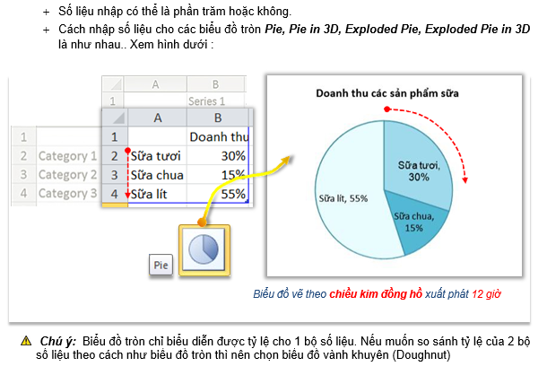 c. Pie – Biểu đồ tròn và cách nhập số liệu