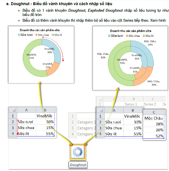 + Khi nhập số liệu, chỉ cần nhập số liệu của biểu đồ con -> miếng thành phần được vẽ từ tổng số liệu của biểu đồ con. Xem hình: