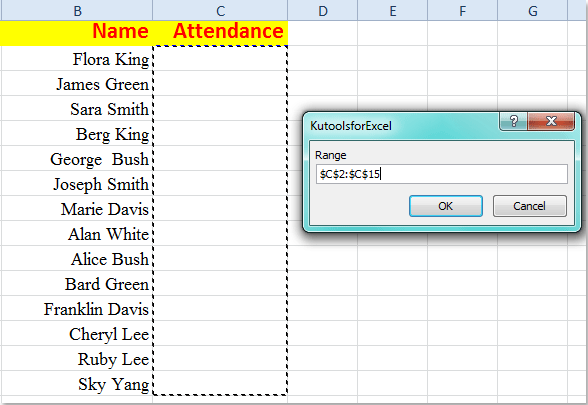 - Sau đó nhấp nút để chạy đoạn mã. Một hộp thoại cảnh báo xuất hiện để nhắc bạn chọn vùng mà bạn muốn chèn các checkbox. Xèm hình dưới đây: