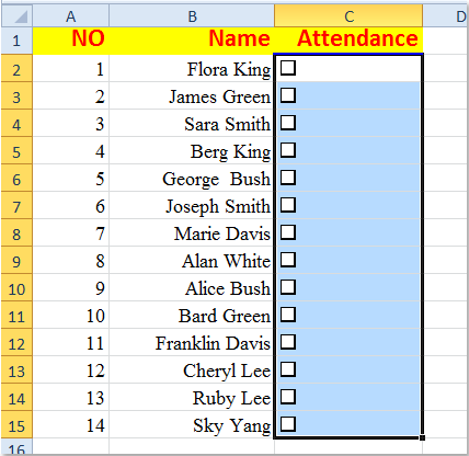 Nếu bạn nghĩ phương pháp đầu tiên hơi phiền, mã VBA sau có thể giúp bạn nhanh chóng chèn nhiều checkbox một cách dễ dàng.