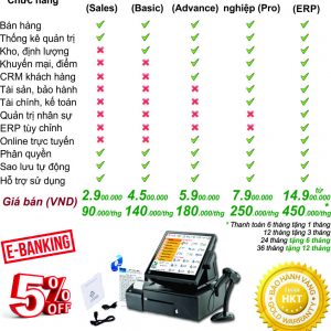 * Giá bán trọn gói vĩnh viễn sử dụng online chưa gồm phí duy trì máy chủ tại HKT (tiền điện, khấu hao phần cứng …) sẽ thu phí 300k/năm từ năm thứ 4 trở đi. - Máy in K80 USB+LAN (bảo hành 12 tháng)