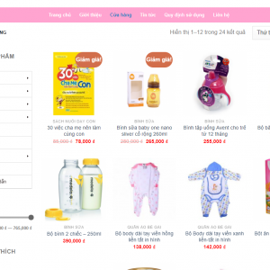 Theme Baby Shop được thiết kế rất bắt mắt, gọn gàng, tông màu nhẹ nhàng, vui tươi, phù hợp cho website bán hàng trẻ em, trẻ sơ sinh.