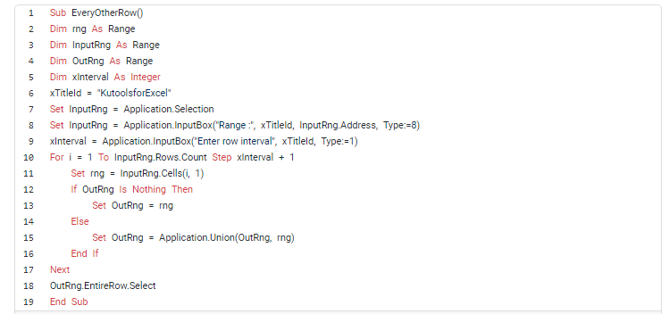 Trong ví dụ này, tôi sẽ chọn các hàng cách nhau. Với mã VBA, tôi làm như sau: