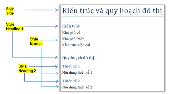 – Style Normal : áp dụng cho toàn bộ tài liệu, các đoạn văn bản. Các Style khác đều được tạo ra dựa trên Style Normal;