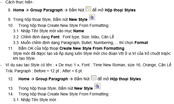 a. Tạo Style dựa trên một đoạn văn bản đã định dạng