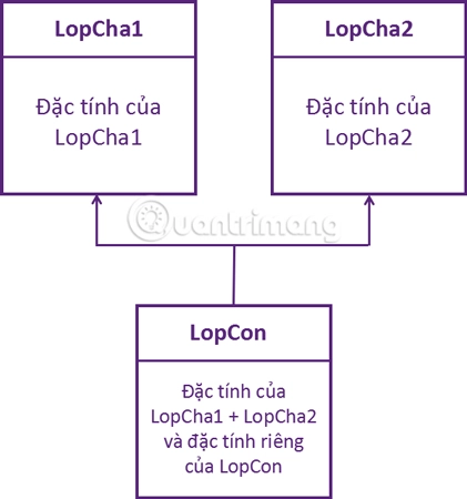 Lớp con đươc định nghĩa từ nhiều lớp cha và kế thừa đặc tính của cả hai lớp.