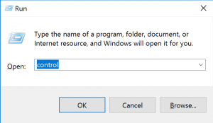 Bước 1: Bấm phím tắt Windows + R, trong hộp thoại Run này, gõ Control rồi bấm Enter