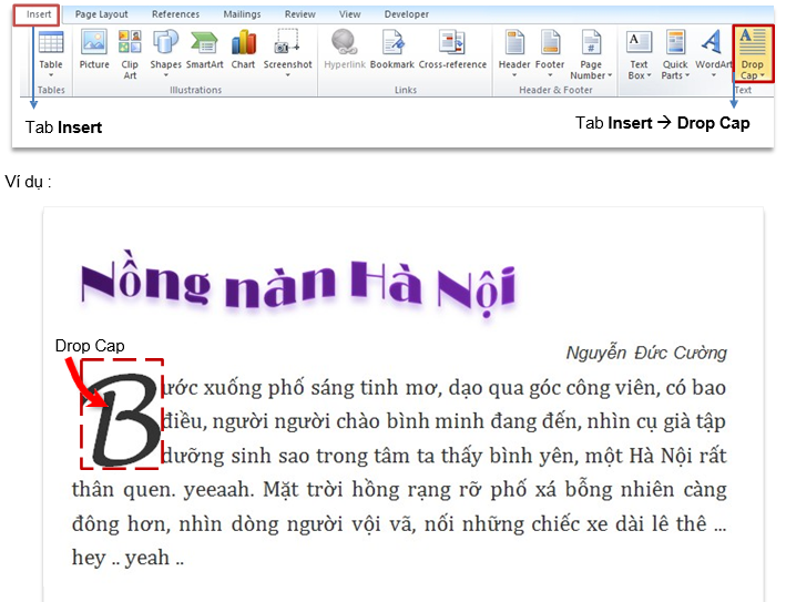 Tạo và trình bày ký tự lớn (Drop Cap ) đầu đoạn văn bản