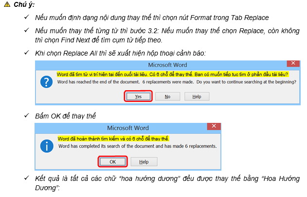3.2 Chọn Replace All để thay thế tất cả các cụm từ “hoa hướng dương” thành “Hoa Hướng Dương”.