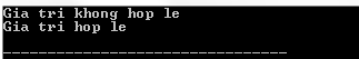 #include <stdio.h> #include <errno.h> #include <math.h> int main() { double val; errno = 0; val = sqrt(-10); if(errno == EDOM) { printf("Gia tri khong hop le \n"); } else { printf("Gia tri hop le\n"); } errno = 0; val = sqrt(10); if(errno == EDOM) { printf("Gia tri khong hop le\n"); } else { printf("Gia tri hop le\n"); } return(0); }