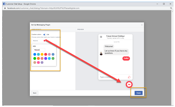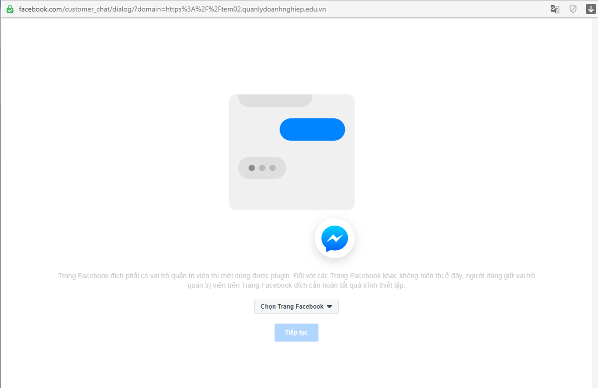 Bước 6. Một cửa sổ Thiết lập Trò chuyện Khách hàng sẽ xuất hiện, nơi sẽ chọn Trang Facebook.