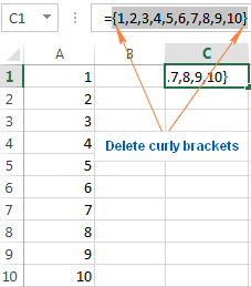 - Xoá dấu ngoặc nhọn biến một công thức Excel thông thường thành công thức mảng . Kết quả là, bạn sẽ có tất cả các ô tham chiếu để nối trong công thức của bạn.