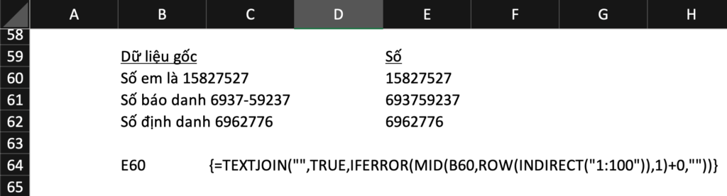 SỬ DỤNG HÀM INDIRECT ĐỂ TÁCH SỐ RA KHỎI CHỮ