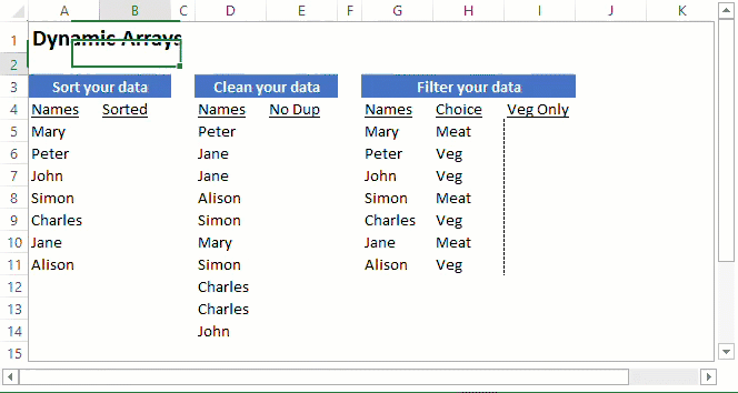 Các chức năng như sắp xếp, lấy kết quả duy nhất hoặc lọc dữ liệu giờ chúng ta có thể thực hiện bằng hàm Excel thật đơn giản và mở ra khả năng sử dụng Excel theo cách hoàn toàn khác.