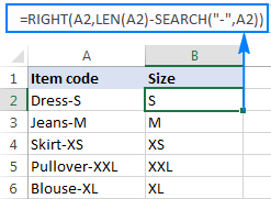 =RIGHT(A2,LEN(A2)-SEARCH(“-“,A2)