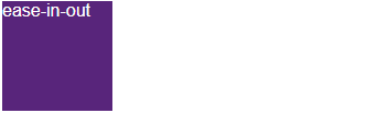 <!DOCTYPE html><html><head><style>section{background-color:#e9d8f4;}div {width: 100px;height: 50px;background: #58257b;color: white;font-family:arial;-webkit-transition: width 1s; /* Safari */transition: width 2s;}/* Dành cho Safari 3.1 to 6.0 */#div1 {-webkit-transition-timing-function: linear;}#div2 {-webkit-transition-timing-function: ease;}#div3 {-webkit-transition-timing-function: ease-in;}#div4 {-webkit-transition-timing-function: ease-out;}#div5 {-webkit-transition-timing-function: ease-in-out;}/* Cú pháp chuẩn */#div1 {transition-timing-function: linear;}#div2 {transition-timing-function: ease;}#div3 {transition-timing-function: ease-in;}#div4 {transition-timing-function: ease-out;}#div5 {transition-timing-function: ease-in-out;}section:hover #div1, section:hover #div2, section:hover #div3, section:hover #div4, section:hover #div5{width:500px;}</style></head><body><section><div id="div1">linear</div><br><div id="div2">ease</div><br><div id="div3">ease-in</div><br><div id="div4">ease-out</div><br><div id="div5">ease-in-out</div><br></section></body></html>