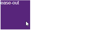 <!DOCTYPE html><html><head><style>section{background-color:#e9d8f4;}div {width: 100px;height: 50px;background: #58257b;color: white;font-family:arial;-webkit-transition: width 1s; /* Safari */transition: width 2s;}/* Dành cho Safari 3.1 to 6.0 */#div1 {-webkit-transition-timing-function: linear;}#div2 {-webkit-transition-timing-function: ease;}#div3 {-webkit-transition-timing-function: ease-in;}#div4 {-webkit-transition-timing-function: ease-out;}#div5 {-webkit-transition-timing-function: ease-in-out;}/* Cú pháp chuẩn */#div1 {transition-timing-function: linear;}#div2 {transition-timing-function: ease;}#div3 {transition-timing-function: ease-in;}#div4 {transition-timing-function: ease-out;}#div5 {transition-timing-function: ease-in-out;}section:hover #div1, section:hover #div2, section:hover #div3, section:hover #div4, section:hover #div5{width:500px;}</style></head><body><section><div id="div1">linear</div><br><div id="div2">ease</div><br><div id="div3">ease-in</div><br><div id="div4">ease-out</div><br><div id="div5">ease-in-out</div><br></section></body></html>
