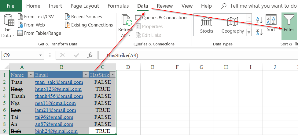 LỌC DỮ LIỆU BỊ GẠCH NGANG (DỮ LIỆU CÓ ĐỊNH DẠNG STRIKETHROUGH)