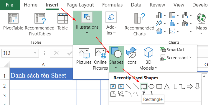 - Danh sách tên sheet