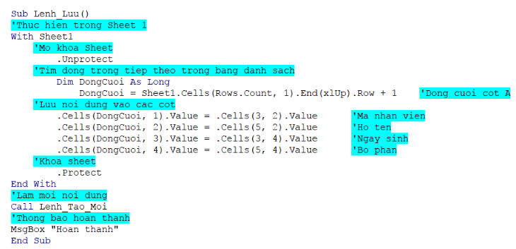 2. TẠO LỆNH LƯU TRONG CỬA SỔ VBA