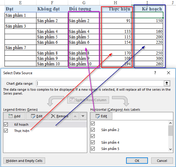 Trong các bước vẽ biểu đồ ở trên, chúng ta thấy ở bước 3 có nói tới việc chúng ta có thể thay đổi dữ liệu nạp vào biểu đồ, giúp biểu đồ thể hiện đúng hơn so với mong muốn. Vậy chúng ta sẽ thực hiện việc này thế nào?