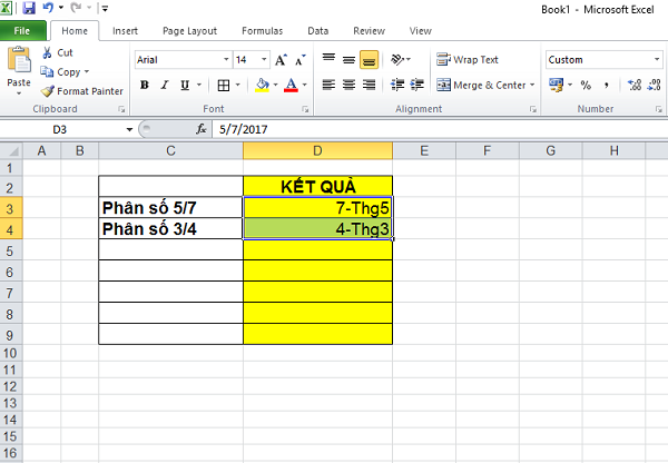 Nhập phân số 3/4 nhưng kết quả lại là ngày 4 tháng 3.