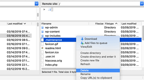 Nếu bạn không thể tìm thấy file .maintenance trong thư mục gốc WordPress của mình, thì hãy đảm bảo bạn đã kiểm tra FTP client để hiển thị các file ẩn.